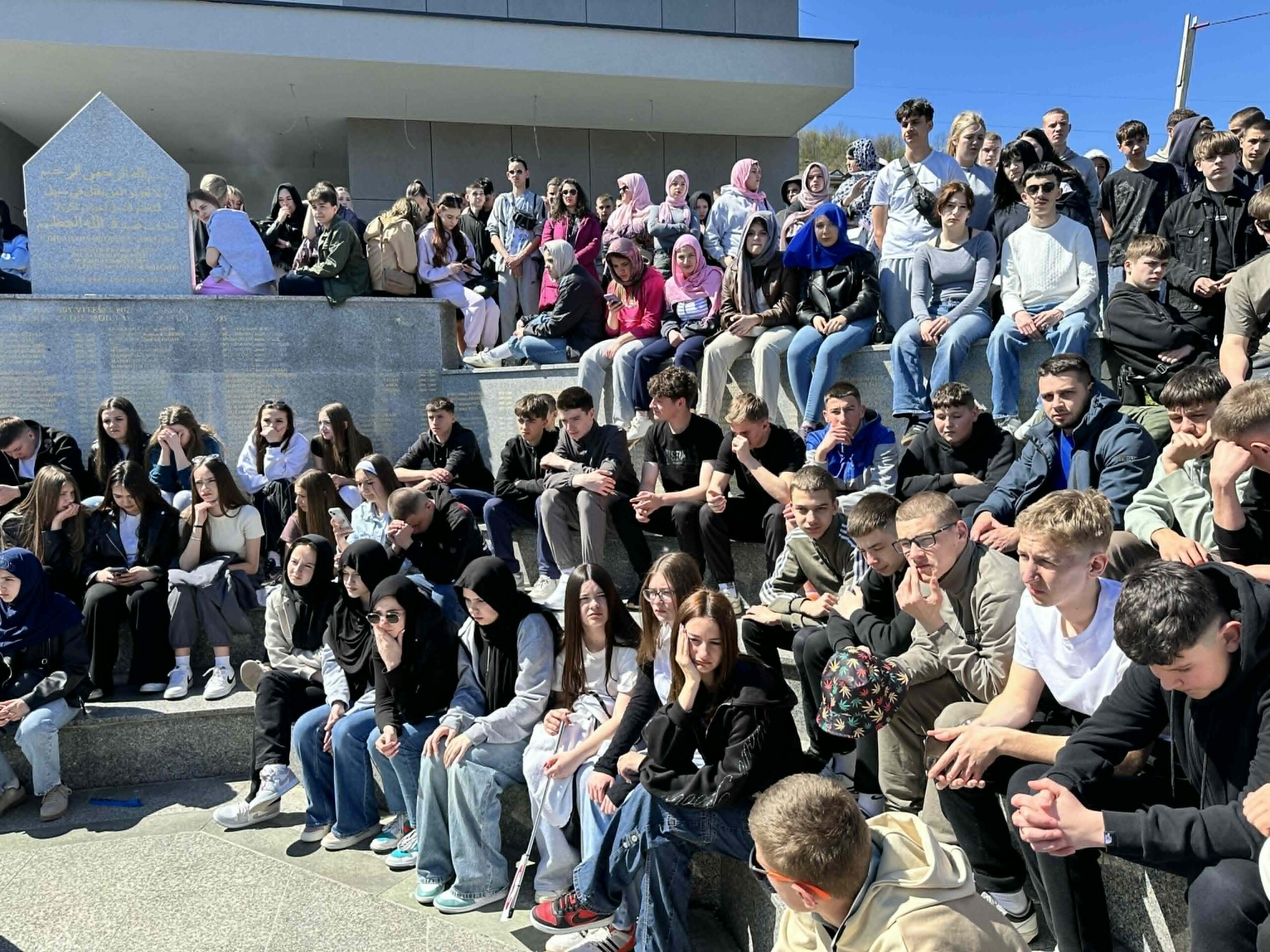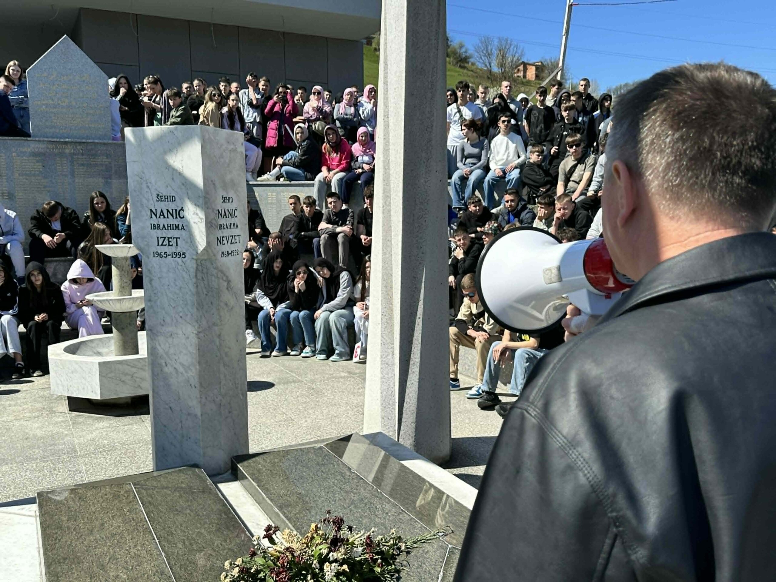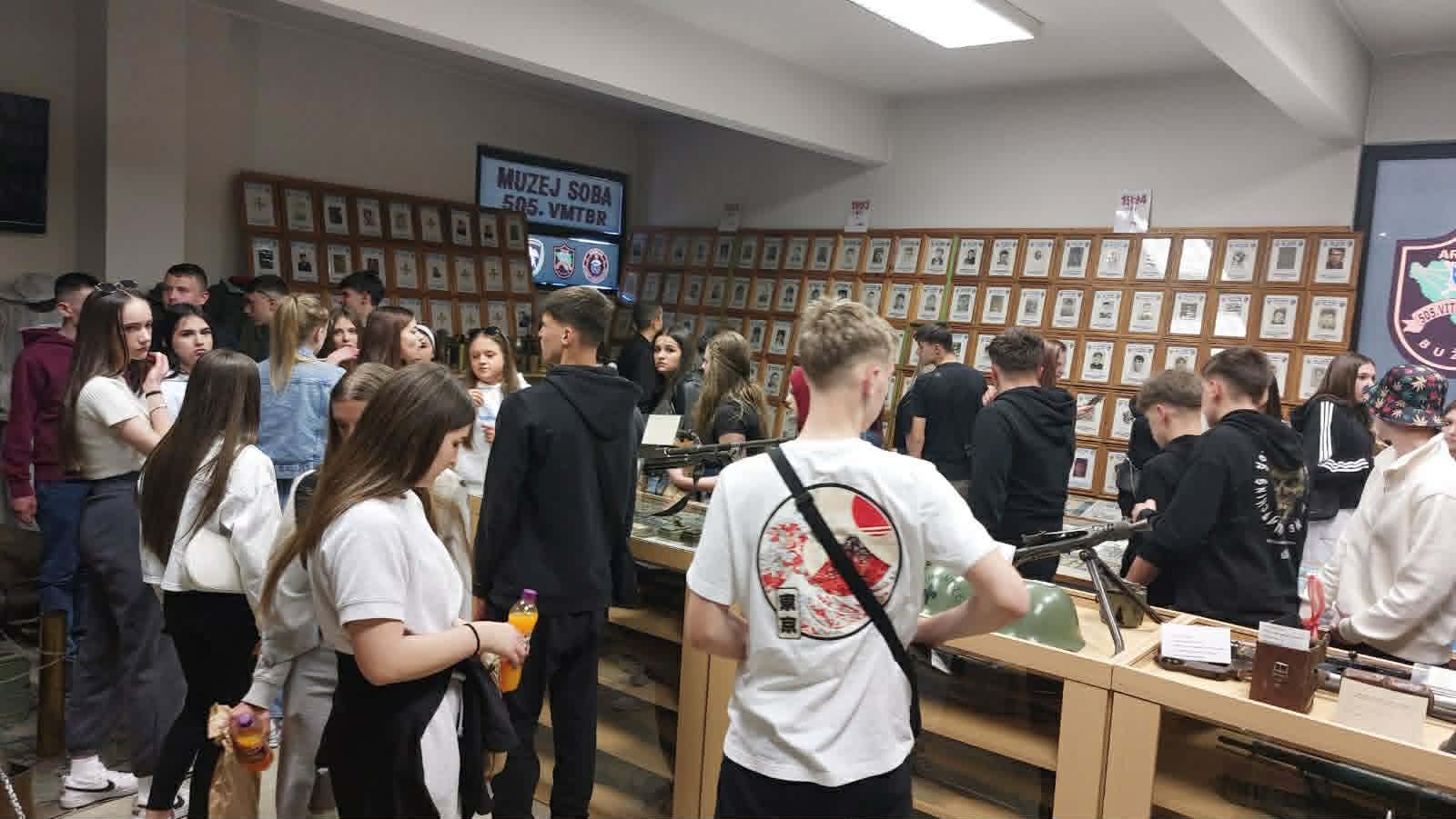 U sklopu studijske posjete, a u organizaciji Instituta za razvoj preduniverzitetskog obrazovanja Kantona Sarajevo u saradnji sa općinom Bužim, 252 učenika prvih razreda sa profesorima srednjih škola Kantona Sarajevo posjetili su danas Bužim. Prema utvrđenom planu učenici i njihovi profesori posjetili su Turbe generala Izeta Nanića i svih šehida 505-e viteške brigade gdje je Sead Emrić, referent za kulturu općine Bužim održao kratak historijski sat a predsjednik Koordinacije boračkih udruženja općine Bužim Edham Eminić pozdravio iste i poželio im dobrodošlicu u viteški grad Bužim. Nakon Turbeta izvršena je posjeta Muzej sobi 505-e viteške brigade gdje je kustos Muzeja Demir Odobašić profesorima i učenicima iz Sarajeva prezentirao sve ono što muzej čuva od svog osnivanja do danas. Inače ove posjete su nastavak prošlogodišnje uspješne saradnje i nastaviće se narednih sedmica organizovano. Beitrags-Navigation ODRŽANA PROMOCIJA KNJIGE «KILOMETRI SREĆE» AUTORA DŽEVADA PONJEVIĆA NASTAVLJA SE ČIŠĆENJE I UREĐENJE BUŽIMNICE I BAŠTRE