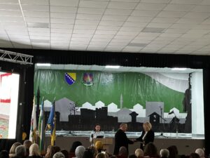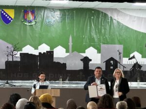 Najmlađa odgojno-obrazovna ustanova na području Općine Bužim pa i Unsko-sanskog kantona JU «Dječiji vrtić» Bužim danas je obilježila svoju trinaestu godinu postojanja, odnosno trinaesti rođendan. Danas je u Velikoj sali JU «Centar za kulturu, sport i informisanje» organiziran je kulturno-zabavni program kojeg su izveli mališani Dječijeg vrtića. Roditelji, brojni građani, predstavnici izvršne i zakonodavne vlasti kao i predstavnici kulturnih, odgojno-obrazovnih ustanova sa područja naše Općine uživali su u izvedenom programu. Na samom početku programa obratio direktor JU «Dječiji vrtić“ Bužim, Nedžad Grošić, i prigodnim riječima čestitao Dan dječijeg vrtića Bužim. Krajem jula 2012. godine Skupština USK donijela je jednoglasnu odluku o osnivanju JU “Dječiji vrtić Bužim” da bi nakon upisa u sudski registar na današnji dan 2012. godine, i ispunjavanja svih preduslova vrtić sa radom zvanično krenuo 01. septembra 2013. godine. Prema informacijama postojaći kapaciteti vrtića popunjeni su, a više od 80 djece je na listi čekanja. Na području općine Bužim u punom je jeku izgradnja jednog od najznačajnijih i najljepših objekata u posljednjih nekoliko godina – Dječijeg vrtića Bužim. Beitrags-Navigation POTPISAN UGOVOR ZA UREĐENJE PARKA «BORIĆI»