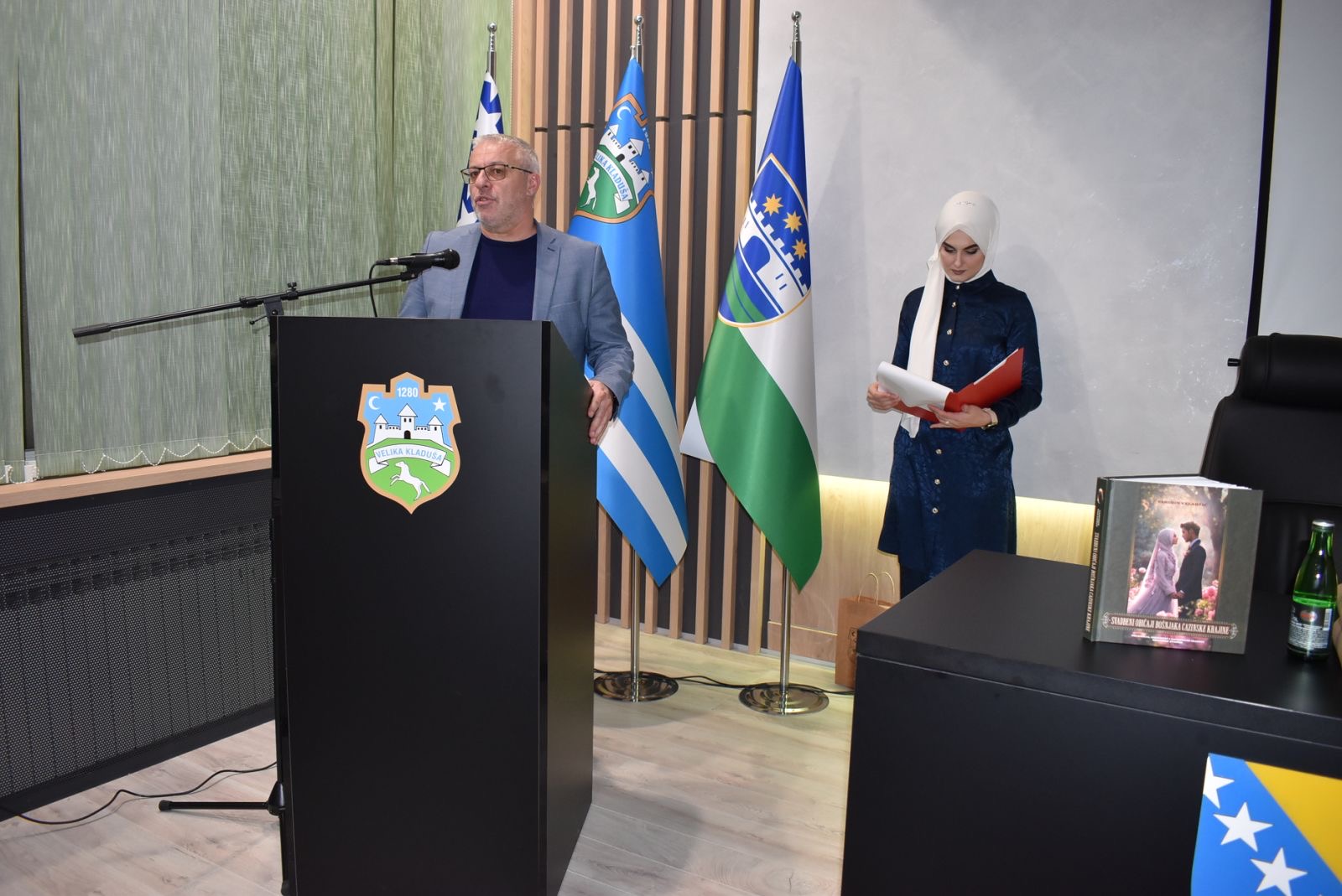 U petak, 13. februara 2026. godine, u ispunjenoj Vijećnici Općine Velika Kladuša održana je promocija knjige „Svadbeni običaji Bošnjaka Cazinske krajine“ autora Vahidina Veladžića. Promocija je započela kur’anskim ajetom o braku, ljubavi i samilosti, koji ujedno otvara i samu knjigu, simbolično podsjećajući da brak u našoj tradiciji nije samo društveni čin, već duboka duhovna i moralna vrijednost. Prisutnima se u uvodu programa obratio savjetnik načelnika Općine Velika Kladuša Fuad Sulejmanagić, naglasivši značaj očuvanja kulturnog identiteta i pisane riječi u vremenu brzih promjena. O knjizi su govorili promotori mr. Amir Sijamhodžić, urednik i jedan od recenzenata, te prof. Halida Brkić, istaknuta aktivistica i prosvjetna radnica. Njihova izlaganja osvijetlila su naučnu, kulturnu i društvenu dimenziju djela koje svadbu sagledava kao instituciju života, zajednice i identiteta. Poseban pečat večeri dali su učesnici kulturno-zabavnog programa. Hor „Gazija“ predstavio je krajišku kajdu i tradiciju natpjevavanja, evocirajući ambijent nekadašnjih perušača, trlji i sijela – mjesta gdje su se rađale simpatije i ašikovanja. Emotivni trenutak večeri bila je izvedba sevdalinke „Kad sretneš Hanku“, u interpretaciji Kemala Dizdarevića uz pratnju kladušanina Anela Halilagića, te izvedbe sevdalinke velikokladuškog hora El-Verdu i nastup Muhameda Ćatića sa tradicionalnom šargijom, čime je simbolično oživljena priča o ljubavi, časti i strasti zabilježena i u samoj knjizi. Večer je kulminirala obraćanjem autora, koji je kroz lične impresije govorio o nastanku knjige, terenskom istraživanju i potrebi da se sačuvaju autentični običaji Cazinske krajine od zaborava. Promocija je realizirana u organizaciji BZK „Preporod“ Velika Kladuša i BZK Bužim, uz podršku Općine Velika Kladuša. Velika Kladuša je još jednom pokazala da knjiga, tradicija i kulturni dijalog imaju svoje mjesto i publiku, a ispunjena vijećnica bila je najbolja potvrda da interes za vlastito naslijeđe ne jenjava. Beitrags-Navigation NAJAVA OBILJEŽAVANJA DANA OPĆINE BUŽIM SINOĆ U BUŽIMU ODRŽAN JE PREDRAMAZANSKI KONCERT ŠEJME MEHIĆ I ZEJDA SVRAKE