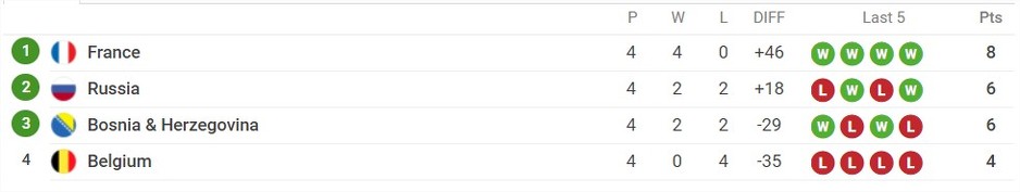 U drugom susretu u našoj grupi Francuska je savladala Belgiju rezultatom 64:49 i na taj način pomogla našoj, ali i ruskoj reprezentaciji u namjerama da se plasiraju u drugi krug kvalifikacija.