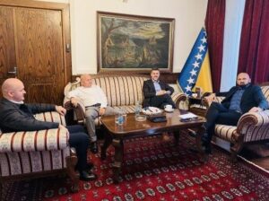 Načelnik Općine Bužim Mersudin Nanić jučer je boravio u posjeti Federalnom ministarstvu unutrašnjih poslova, gdje ga je primio ministar Ramo Isak. Tokom sastanka razgovarano je o sigurnosnoj situaciji na području Općine Bužim, jačanju saradnje između lokalne zajednice i policijskih struktura, te o projektima koji imaju za cilj unapređenje sigurnosti i kvaliteta života građana Bužima. Ministar Isak je istakao važnost stalne i otvorene saradnje između federalnog i lokalnog nivoa vlasti, posebno u segmentu jačanja kapaciteta policijskih službi i izgradnje povjerenja građana u sigurnosne institucije. Također je izrazio spremnost Federalnog ministarstva unutrašnjih poslova da podrži inicijative Općine Bužim koje doprinose stvaranju sigurnijeg i stabilnijeg društvenog okruženja. Načelnik Nanić zahvalio je ministru Isaku na prijemu i otvorenosti za saradnju, naglasivši da je partnerski odnos između lokalne zajednice i viših nivoa vlasti ključan za rješavanje izazova i stvaranje boljih uslova života za sve građane Bužima. Beitrags-Navigation OPĆINSKI NAČELNIK U SLUŽBENOJ POSJETI MINISTRU LOKMIĆU OBAVIJEST POLJOPRIVREDNIM PROIZVOĐAČIMA-PRIJAVA PLANA PROIZVODNJE