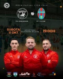U subotu, 11.10.2025. godine u Sportskoj dvorani Bužim od 19:00 h igra se Prva futsal liga FBiH, grupa «Zapad» 1. kolo, u kojem se sastaju FK KONJODOR I FC LILIUM iz Doboj Istoka. «Pobjeda dolazi iz zajedništva» Dobro došli! Beitrags-Navigation ČLANOVI LD «LOVAC» BUŽIM NA PRIJEMU KOD OPĆINSKOG NAČELNIKA POVODOM OTVORA LOVNE SEZONE 2025/26