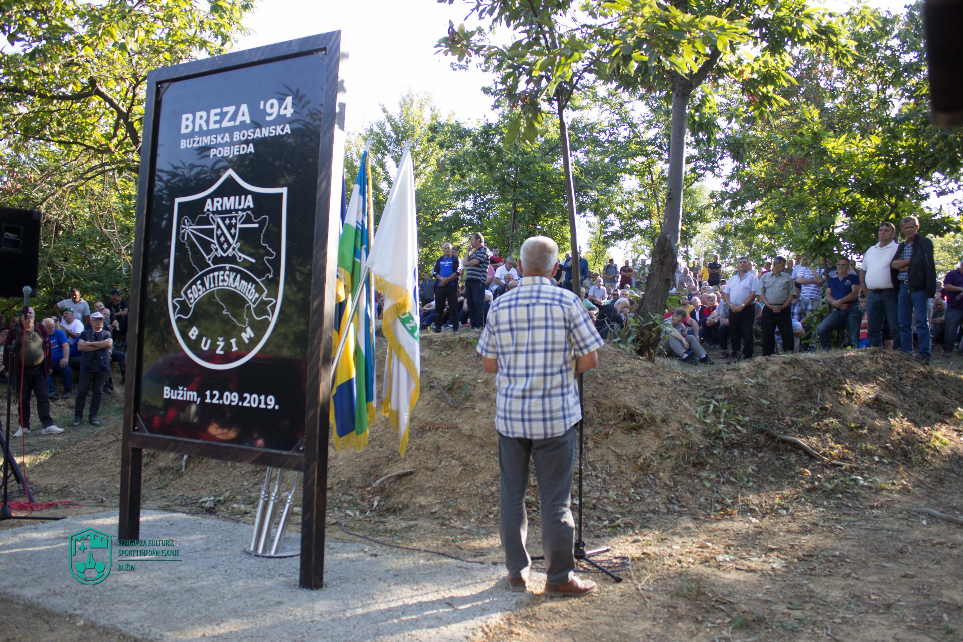Nakon intoniranja himne, i kratkog historijskog sata prisutnima se obratio Edham Eminić, predsjednik organizacionog odbora za obilježavanje bitnih datuma za općinu Bužim iz perioda 1992-1995.