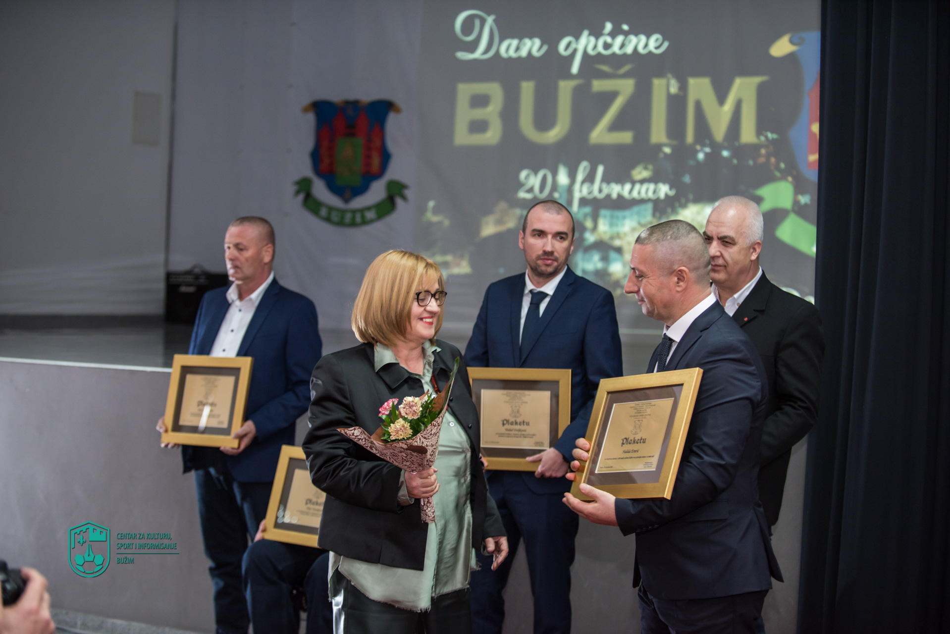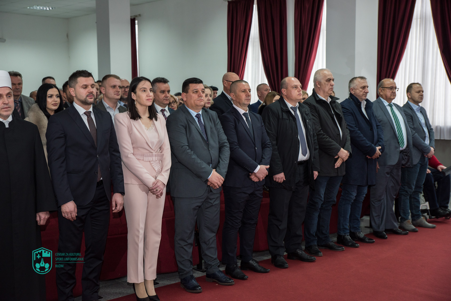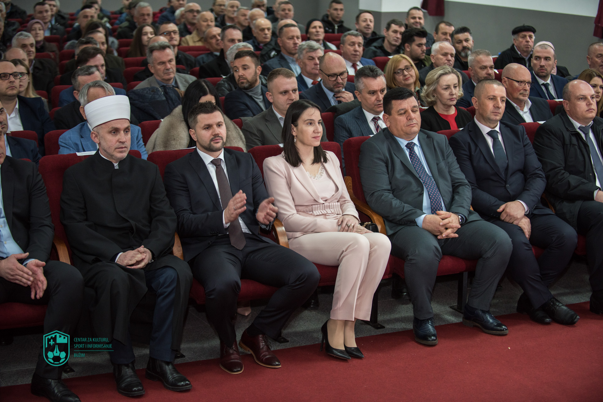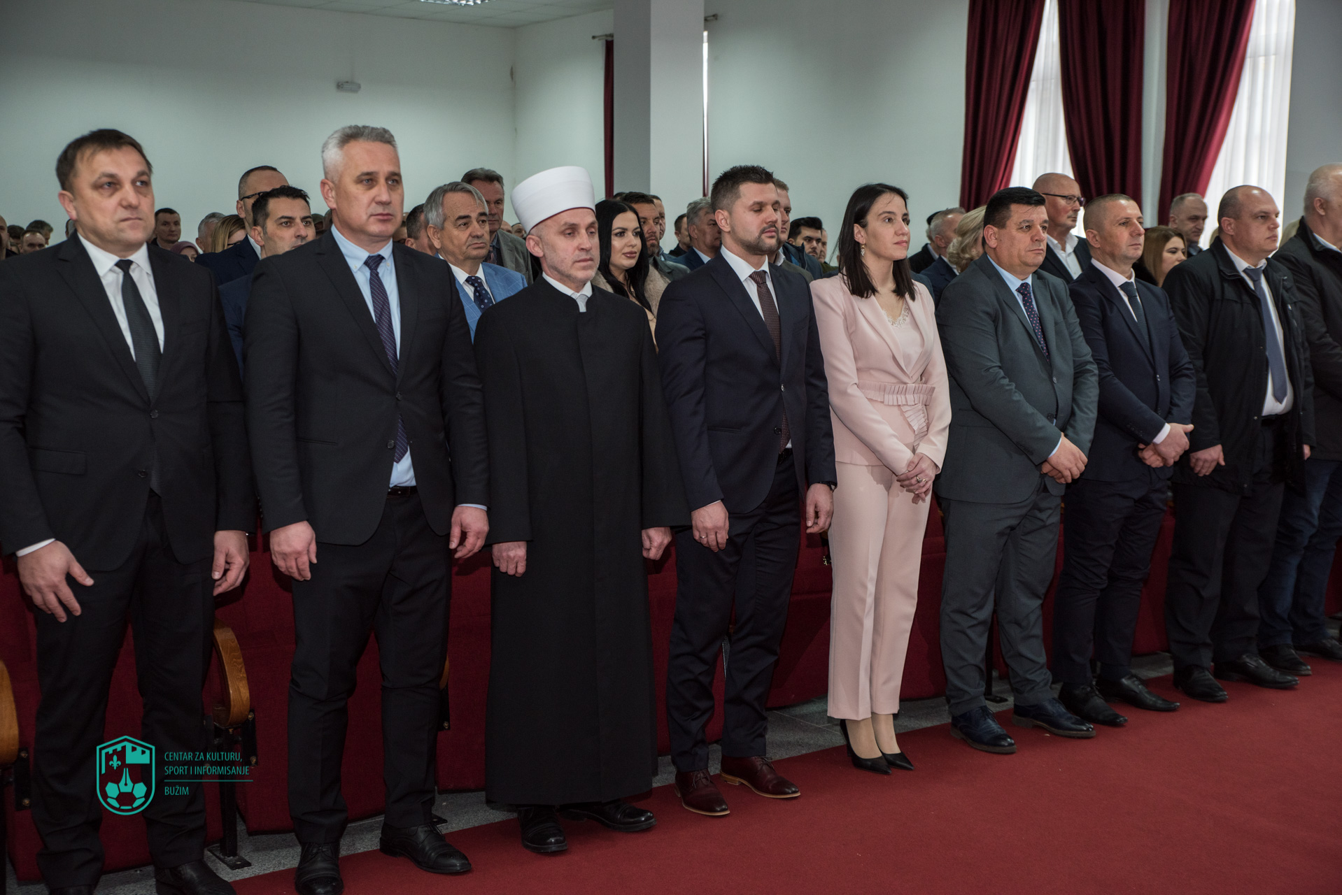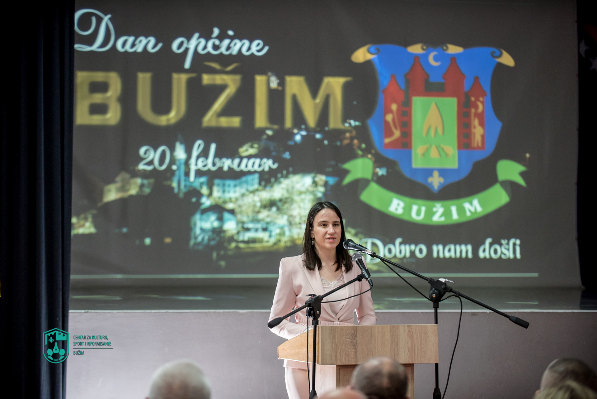Danas je nizom događaja u Bužimu svečano obilježen Dan Općine Bužim. Bužim je kroz historiju dva puta gubio, a tri puta vraćao svoj status, koji mu je kao općini posljednji put vraćen 1995. godine, odlukom Ratnog predsjedništva BiH. Tim povodom upriličena je Svečana sjednica i Svečana akademija koja je, pored domaćina, okupila veliki broj uzvanica sa federalnog, kantonalnog i lokalnog nivoa. Nakon intoniranja himne, prisutnima se obratio predsjedavajući Općinskog vijeća općine Bužim Suvad Šahinović te čestitao svim građankama i građanima rođendan općine Bužim, posebno naglasivši dobrodošlicu svim gostima uz nadu da su stekli pravi dojam o Bužimljanima, kao iskrenim, čestitim i hrabrim ljudima koji vole svoju domovinu i koji su za suživot i toleranciju, a ne kako ih se posljednjih nekoliko mjeseci predstavlja. Nakon njega skupu se obratio Mersudin Nanić, načelnik općine Bužim, takođe čestitavši 27. rođendan općine Bužim. Između ostalog zahvalio se svima koji pomažu općini Bužim, te se osvrnuo posebno na infrastrukturne projekte u protekloj godini te naglasio da je u Bužim uloženo preko 5 miliona KM što Bužim čini i činiće sredinu za lakši i bolji život mještana. Takav trend najavio je i u 2022. godini. Prisutnima su se obratili i čestitke uputili i Premijer USK Mustafa Ružnić, kao i Ministar Poljoprivrede vodoprivrede i šumarstva FBiH u ime premijera FBiH Fadila Novalića Šemsudin Dedić, a nakon njih i muftija bihaćki hafiz Mehmed ef. Kudić. Nakon pauze i nastupa članica Ženskog gradskog hora Bužim, uslijedila je dodjela najviših općinskih priznanja. Povelja Općine Bužim za 2022. godinu dodijeljena je OZZ «Trgozad, dok je počasnim građaninom općine Bužim ove godine proglašena Benjamina Karić Londrc, gradonačelnica grada Sarajevo, koja je u svom obraćanju obećala svesrdnu saradnju i pomoć Grada Sarajevo općini Bužim u infrastrukturi, školstvu i kulturi. Povelje su zajedno uručili načelnik općine Bužim Mersudin Nanić i predsjedavajući Općinskog vijeća Suvad Šahinović. Prije svečane sjednice, Općina Bužim upriličila je prijem za dosadašnje predstavnike izvršne i zakonodavne vlasti na lokalnom nivou, te za brojne uzvanice javnog, društvenog i političkog miljea. Organizovana je i posjeta Turbetu generala Izeta Nanića, gdje je odana počast svim šehidima, a zatim i posjeta Muzej sobi 505. Viteške brigade. Za nesebičan društveni doprinos pojedincima i kolektivima uručene su brojne plakete najistaknutijim građanima, Plakete Općine Bužim dodjeljene su: Arifu Rifi Cincu, Vedadu Deljkoviću, Aliji Durakoviću – Gumenom, Razimu Halkiću i Halidi Emrić, a uručio ih je zamjenik predsjedavajaćeg općinskog vijeća Nermin Porić Nas kraju programa prisutni su imali priliku vidjeti video prezentaciju projekta Muzeja 505. Viteške brigade koji će se graditi na Turbetu Generala Izeta Nanića. Manifestacija Dani općine Bužim nastavlja se i idućih dana te pozivamo sve građane da prate i ostale sadržaje. Više fotografija pogledajte u galeriji ispod: Beitrags-Navigation ČESTITKA POVODOM DANA OPĆINE BUŽIM OPĆINA TRNOVO SUFINASIRA PROJEKAT IZGRADNJE MUZEJ SOBE 505. VITEŠKE BRIGADE
