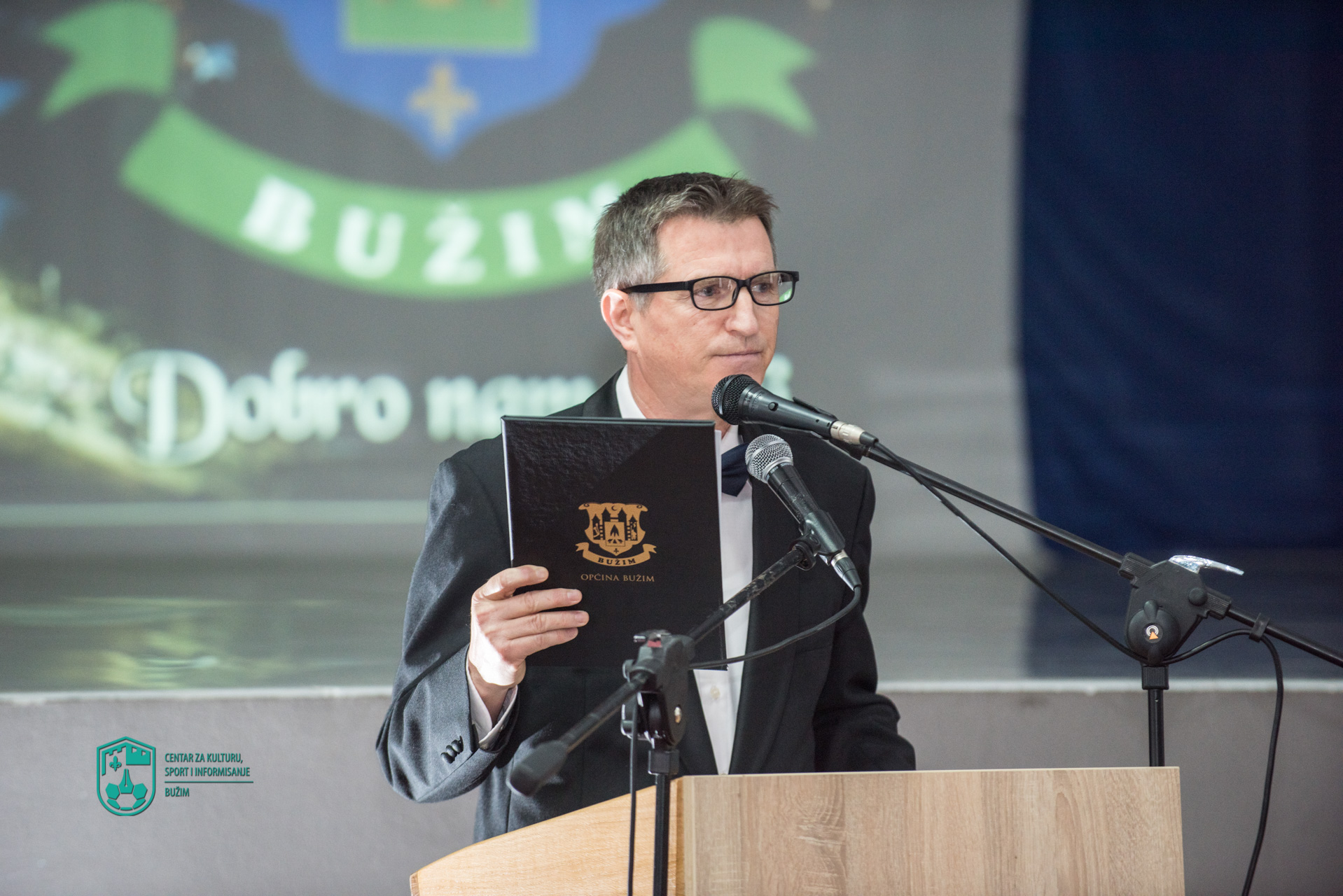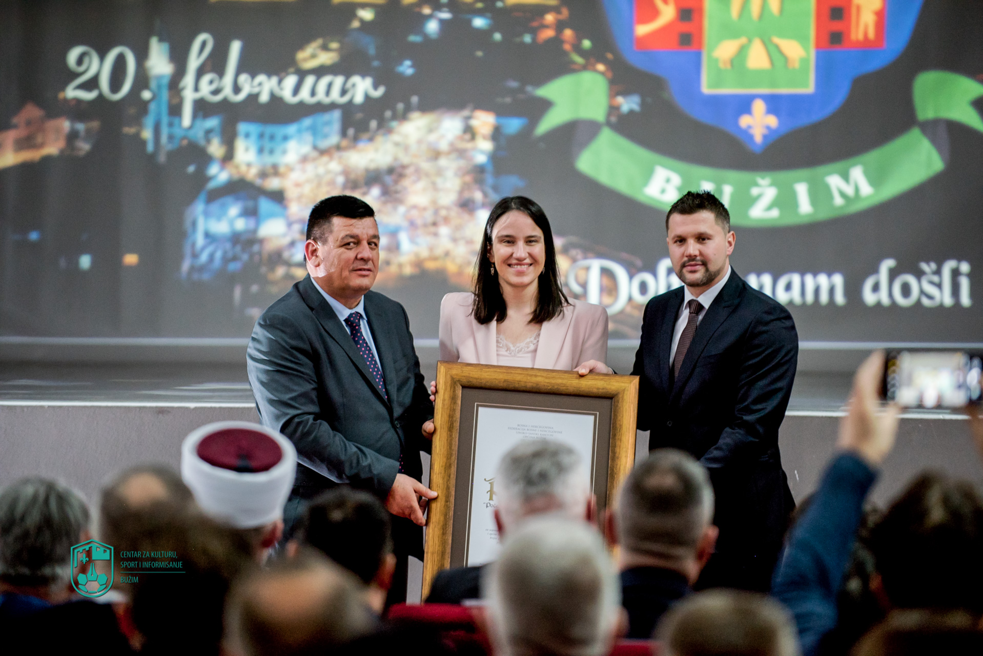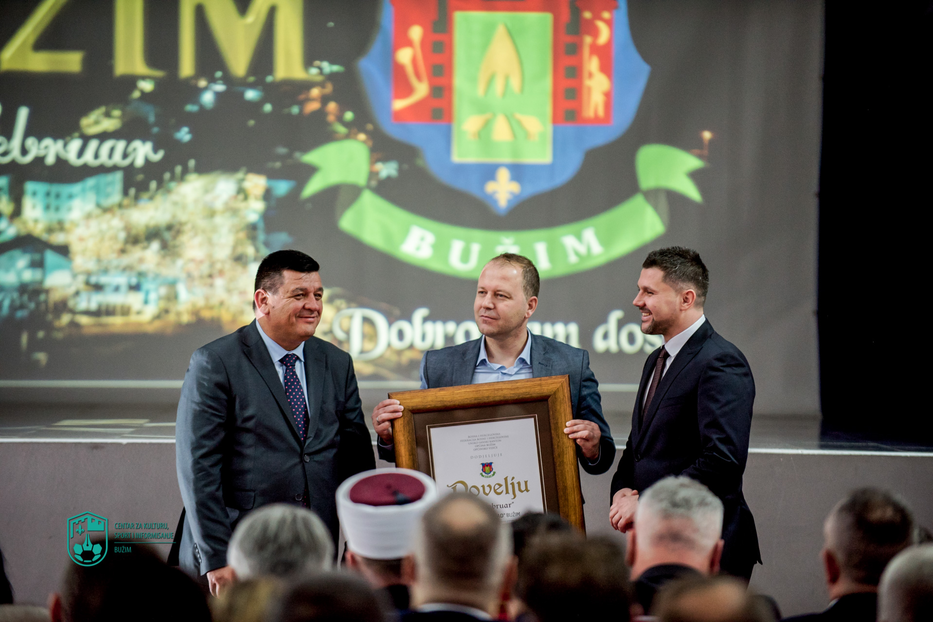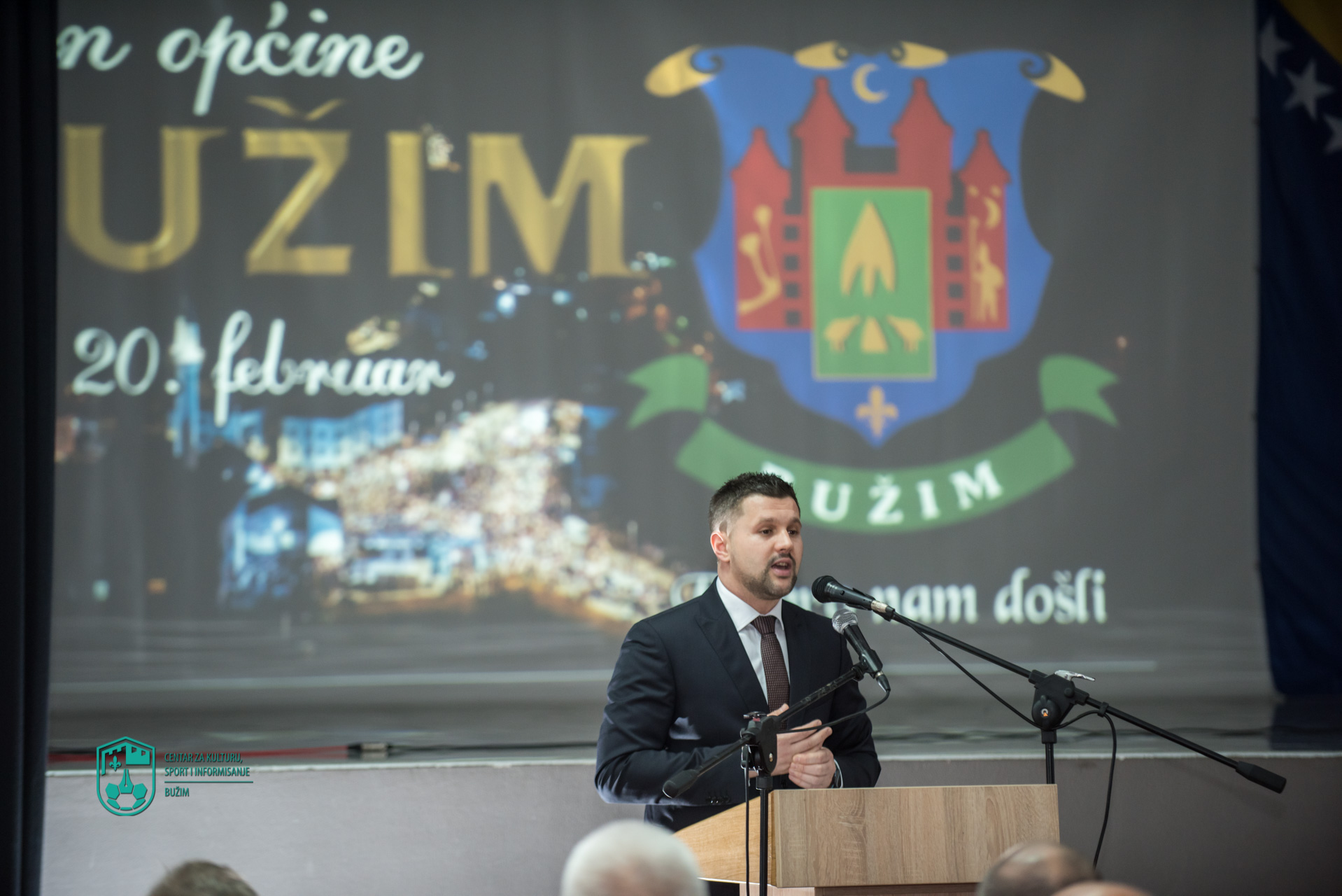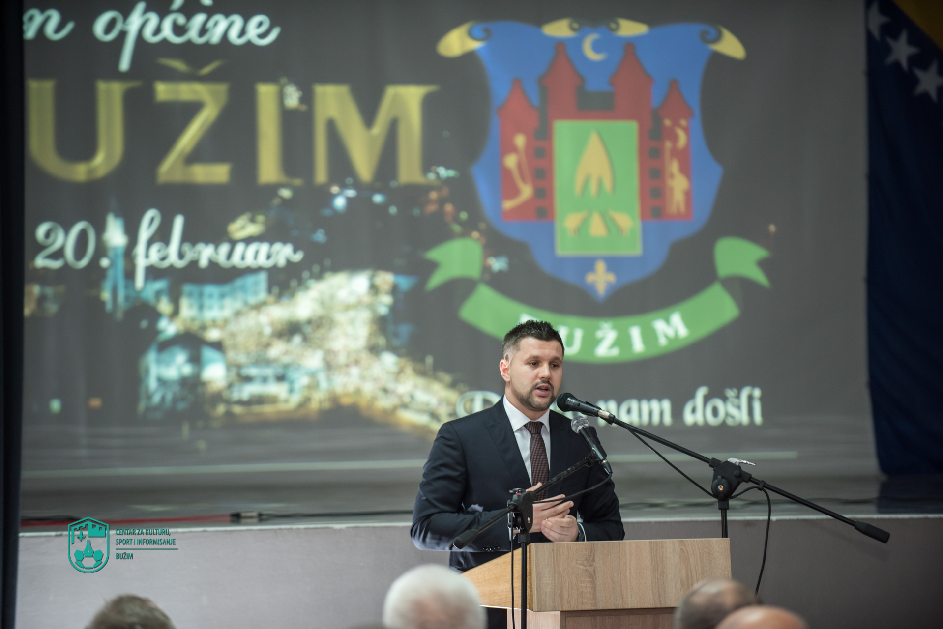 Danas je nizom događaja u Bužimu svečano obilježen Dan Općine Bužim. Bužim je kroz historiju dva puta gubio, a tri puta vraćao svoj status, koji mu je kao općini posljednji put vraćen 1995. godine, odlukom Ratnog predsjedništva BiH. Tim povodom upriličena je Svečana sjednica i Svečana akademija koja je, pored domaćina, okupila veliki broj uzvanica sa federalnog, kantonalnog i lokalnog nivoa. Nakon intoniranja himne, prisutnima se obratio predsjedavajući Općinskog vijeća općine Bužim Suvad Šahinović te čestitao svim građankama i građanima rođendan općine Bužim, posebno naglasivši dobrodošlicu svim gostima uz nadu da su stekli pravi dojam o Bužimljanima, kao iskrenim, čestitim i hrabrim ljudima koji vole svoju domovinu i koji su za suživot i toleranciju, a ne kako ih se posljednjih nekoliko mjeseci predstavlja. Nakon njega skupu se obratio Mersudin Nanić, načelnik općine Bužim, takođe čestitavši 27. rođendan općine Bužim. Između ostalog zahvalio se svima koji pomažu općini Bužim, te se osvrnuo posebno na infrastrukturne projekte u protekloj godini te naglasio da je u Bužim uloženo preko 5 miliona KM što Bužim čini i činiće sredinu za lakši i bolji život mještana. Takav trend najavio je i u 2022. godini. Prisutnima su se obratili i čestitke uputili i Premijer USK Mustafa Ružnić, kao i Ministar Poljoprivrede vodoprivrede i šumarstva FBiH u ime premijera FBiH Fadila Novalića Šemsudin Dedić, a nakon njih i muftija bihaćki hafiz Mehmed ef. Kudić. Nakon pauze i nastupa članica Ženskog gradskog hora Bužim, uslijedila je dodjela najviših općinskih priznanja. Povelja Općine Bužim za 2022. godinu dodijeljena je OZZ «Trgozad, dok je počasnim građaninom općine Bužim ove godine proglašena Benjamina Karić Londrc, gradonačelnica grada Sarajevo, koja je u svom obraćanju obećala svesrdnu saradnju i pomoć Grada Sarajevo općini Bužim u infrastrukturi, školstvu i kulturi. Povelje su zajedno uručili načelnik općine Bužim Mersudin Nanić i predsjedavajući Općinskog vijeća Suvad Šahinović. Prije svečane sjednice, Općina Bužim upriličila je prijem za dosadašnje predstavnike izvršne i zakonodavne vlasti na lokalnom nivou, te za brojne uzvanice javnog, društvenog i političkog miljea. Organizovana je i posjeta Turbetu generala Izeta Nanića, gdje je odana počast svim šehidima, a zatim i posjeta Muzej sobi 505. Viteške brigade. Za nesebičan društveni doprinos pojedincima i kolektivima uručene su brojne plakete najistaknutijim građanima, Plakete Općine Bužim dodjeljene su: Arifu Rifi Cincu, Vedadu Deljkoviću, Aliji Durakoviću – Gumenom, Razimu Halkiću i Halidi Emrić, a uručio ih je zamjenik predsjedavajaćeg općinskog vijeća Nermin Porić Nas kraju programa prisutni su imali priliku vidjeti video prezentaciju projekta Muzeja 505. Viteške brigade koji će se graditi na Turbetu Generala Izeta Nanića. Manifestacija Dani općine Bužim nastavlja se i idućih dana te pozivamo sve građane da prate i ostale sadržaje. Više fotografija pogledajte u galeriji ispod: Beitrags-Navigation ČESTITKA POVODOM DANA OPĆINE BUŽIM OPĆINA TRNOVO SUFINASIRA PROJEKAT IZGRADNJE MUZEJ SOBE 505. VITEŠKE BRIGADE