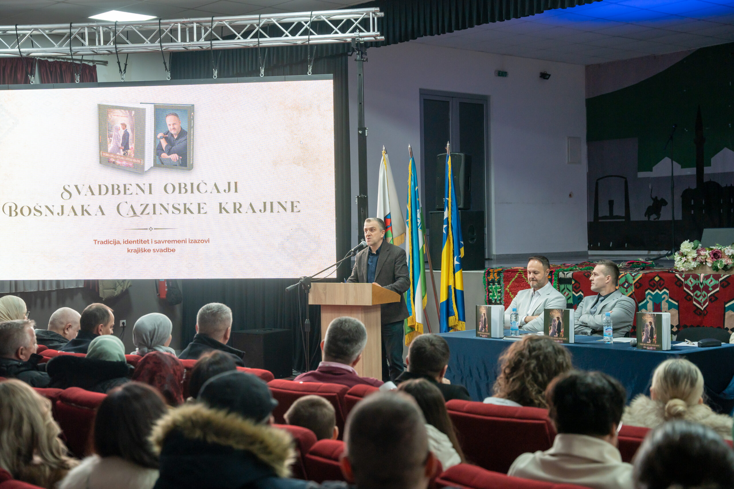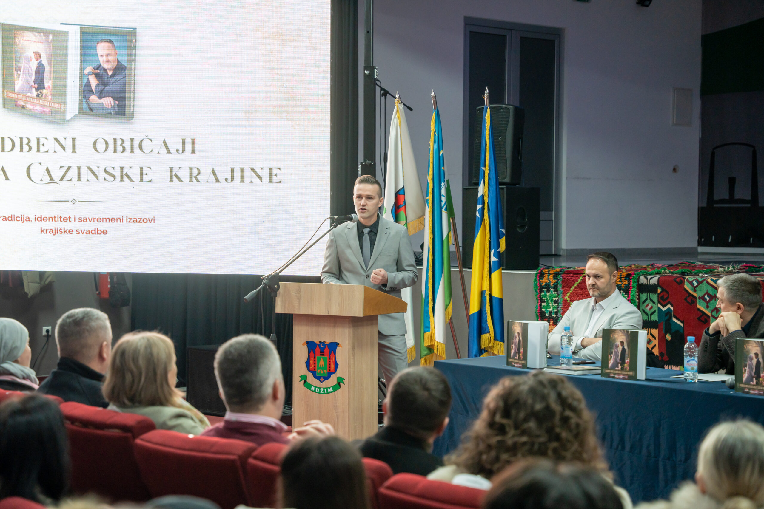 U velikoj sali JU „Centar za kulturu, sport i informisanje“ u Bužimu promovisana je knjiga „Svadbeni običaji Bošnjaka Cazinske krajine“, etnografska studija autora Vahidina Veladžića, u izdanju Bošnjačke zajednice kulture Bužim. Autor Vahidin Veladžić istakao je da je ideja za knjigu proistekla iz potrebe da se svadbeni običaji sagledaju u njihovom izvornom, historijskom i društvenom kontekstu, obzirom da se u savremenoj praksi često pogrešno tumače ili izvode bez poznavanja njihovog stvarnog značenja. – Tokom istraživanja uočio sam da se mnogi tradicionalni običaji prenose i izvode bez jasnog razumijevanja njihovog porijekla i simbolike, što je otvorilo potrebu za sistematskim i naučno utemeljenim pristupom ovoj temi – kazao je Veladžić. Kako je pojasnio, ulaskom u istraživački proces otvorio se znatno širi tematski okvir. Knjiga je zasnovana na arhivskoj građi Unsko-sanskog kantona, usmenim kazivanjima starijih osoba i terenskom istraživanju, a koncipirana je kao monografija koja prati razvoj svadbenih običaja od srednjeg vijeka, preko osmanskog i austrougarskog perioda, Kraljevine SHS, socijalističkog razdoblja i ratnih godina, do savremenih svadbi. Poseban dio istraživanja posvećen je pojavama poput divljih brakova, naročito na području Cazina i Velike Kladuše, zatim mnogoženstva, promjena u strukturi i funkciji svadbenih običaja, kao i društvenih i ekonomskih okolnosti koje su utjecale na instituciju braka. Autor naglašava da knjiga može biti korisna kako istraživačima tradicije i kulture, tako i svima koji žele dublje razumjeti društveni i identitetski okvir krajiških svadbi. Promotori su bili prof.dr. Elvira Islamović, mr. Meho Šljivo i mr. Amir Sijamhodžić. Promotor mr. Meho Šljivo ocijenio je knjigu kao sistematičnu i cjelovitu studiju o historiji braka na području Cazinske krajine u posljednjih stotinu godina. – Autor je s metodološkom ozbiljnošću prikazao čitav spektar oblika brakova, bez idealizacije institucije braka, ukazujući na njegovu povezanost s društvenim okolnostima, ekonomskom nužnošću i borbom za egzistenciju – istakao je Šljivo. Dodao je da se radi o vrijednom etnografskom istraživanju koje će predstavljati značajan izvor za buduća proučavanja običaja i tradicije ovog kraja. Jedan od promotora, Amir Sijamhodžić, naveo je da je riječ o 39. izdanju Bošnjačke zajednice kulture Bužim, te trećem objavljenom tokom ove godine. – Knjiga donosi nova istraživačka saznanja o identitetu, tradiciji i običajima bošnjačkog naroda na području Cazina, Velike Kladuše, Bužima, dijela Bosanske Krupe i Bihaća, čime značajno obogaćuje kulturno-historijsku literaturu Krajine – kazao je Sijamhodžić. Istakao je da su recenzenti knjige Izet Perviz i prof. dr. Nirha Efendić, dok su promotori bili prof. dr. Elvira Islamović s Univerziteta u Bihaću i mr. Meho Šljivo, šef Ureda za hatabet pri Islamskoj zajednici u Bosni i Hercegovini. Promocija je održana u okviru kulturnog programa, u organizaciji Bošnjačke zajednice kulture Bužim i JU „Centar za kulturu, sport i informisanje“ Bužim, a program su obogatili izvođenjem tačaka koje su povezane sa knjigom KUD «Stijena» Cazina, KUD «Sevdah» Bužim, Duo Kemal i Edib, te bužimski hor Gazija. Voditelj programa je bila Naila Elkasović Abdić. Beitrags-Navigation U MZ LUBARDA SVEČANO OTVORENA DVA PUTNA PRAVCA NAČELNIK OPĆINE I CRVENI KRIŽ POSJETIO PORODICE LELIĆ I LJUBIJANIĆ ČIJE SU KUĆE STRADALE U NEDAVNOM POŽARU