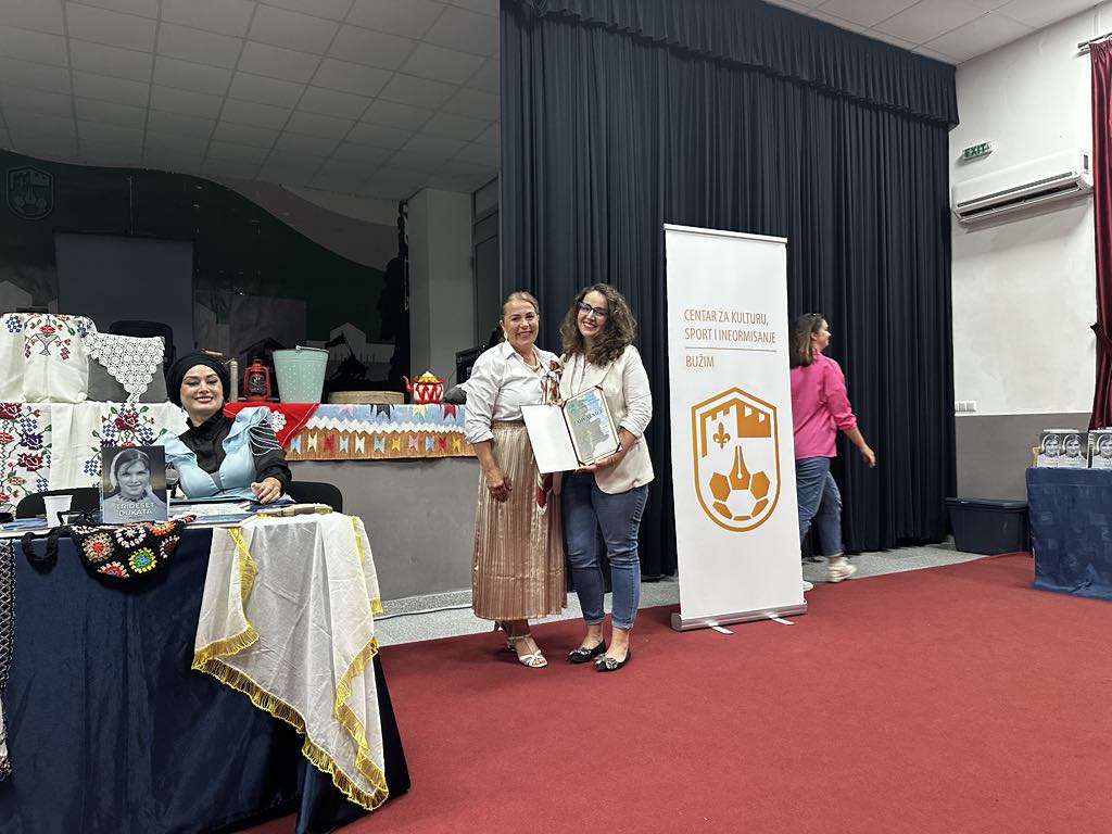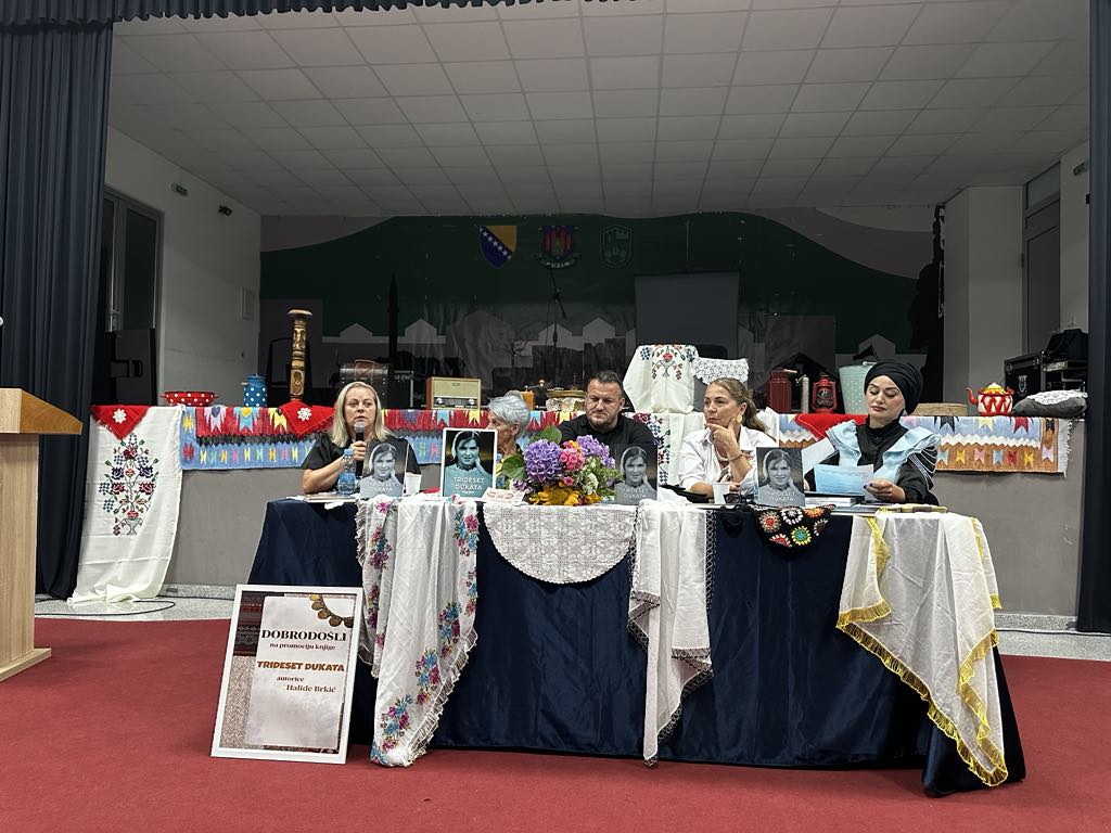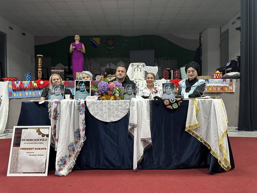Proteklog vikenda u Velikoj sali JU “Centar za kulturu, sport i informisanje” Bužim održana je promocija knjige “Trideset dukata” autorice Halide Brkić. «Trideset dukata» je Knjiga o životu, o malim ljudima i njihovim sudbinama, o krajiškim hrabrim i izdržljivim ženama. Knjiga je svjedok i nezaborav, amanet i sjećanje. Posveta i opomena o čuvanju identiteta. Priče su istinite, vrijednije od simboličnog naziva. Našoj djeci ostavština- kazala je autorica Brkić. O Knjizi su još govorili: Fikreta Muslić prof., Dževad Ponjević prof., koji su u detaljnim osvrtima predstavili sadržaj knjige, naglašavajući da je riječ o jednoj vrlo čitkoj i zanimljivoj knjizi, te sestra autorice Ramiza Ćehić koja živi i radi u Americi i svrstava se među 180 najuspješnijih ljudi iz drugih zemalja. Program promocije moderirala je Zehira Džanić, u sklopu kulturno-zabavnog programa učestvovala je Zilha Porić koja se publiku počastila sa tri sevdalinke. Čestitamo autorici Halidi Brkić. Beitrags-Navigation ZAVRŠEN KAMP MLADIH IZVIĐAČA 2025 OBILJEŽENA PRVA GODIŠNJICA SMRTI «ZLATNOG LJILJANA» ARIFA CINCA-RIFE