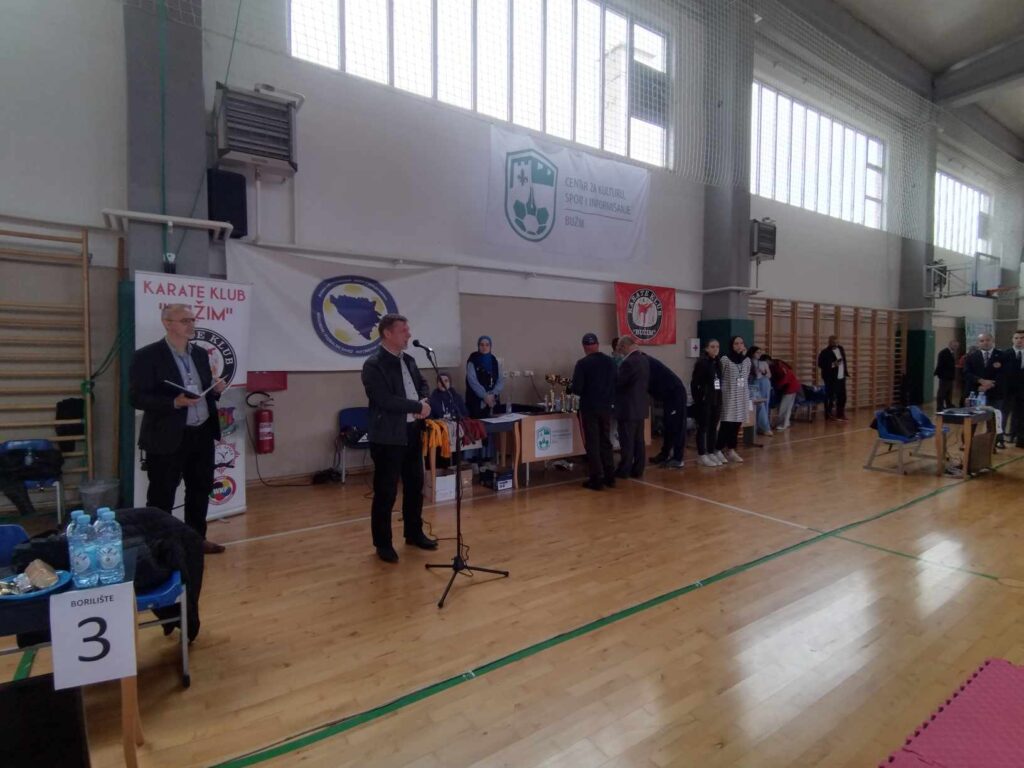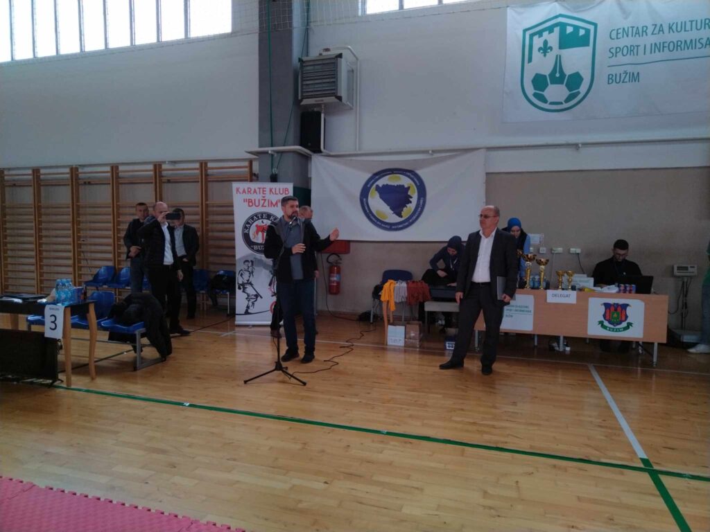 U Bužimu je proteklog vikenda u Sportskoj dvorani Bužim u organizaciji Karate kluba Bužim održano 18. Karate prvenstvo USK za djecu, kadete, juniore i U21. Učešće je uzelo 16 klubova sa područja USK sa oko 300 učesnika takmičara. Nakon intoniranja himne prisutnima se obratio predsjednik Kantonalnog karate saveza Samir Cazinkić, a turnir je u ime domaćina otvorio načelnik općine Bužim Mersudin Nanić. Uslijedilo je višesatno takmičenje po kategorijama, a najuspješniji klubovi i pojednici su nagrađeni medaljama. Beitrags-Navigation DELEGACIJA VLADE I SKUPŠTINE USK U POSJETI OPĆINI BUŽIM OBILJEŽENO 20 GODINA KUD-A SEVDAH BUŽIM
