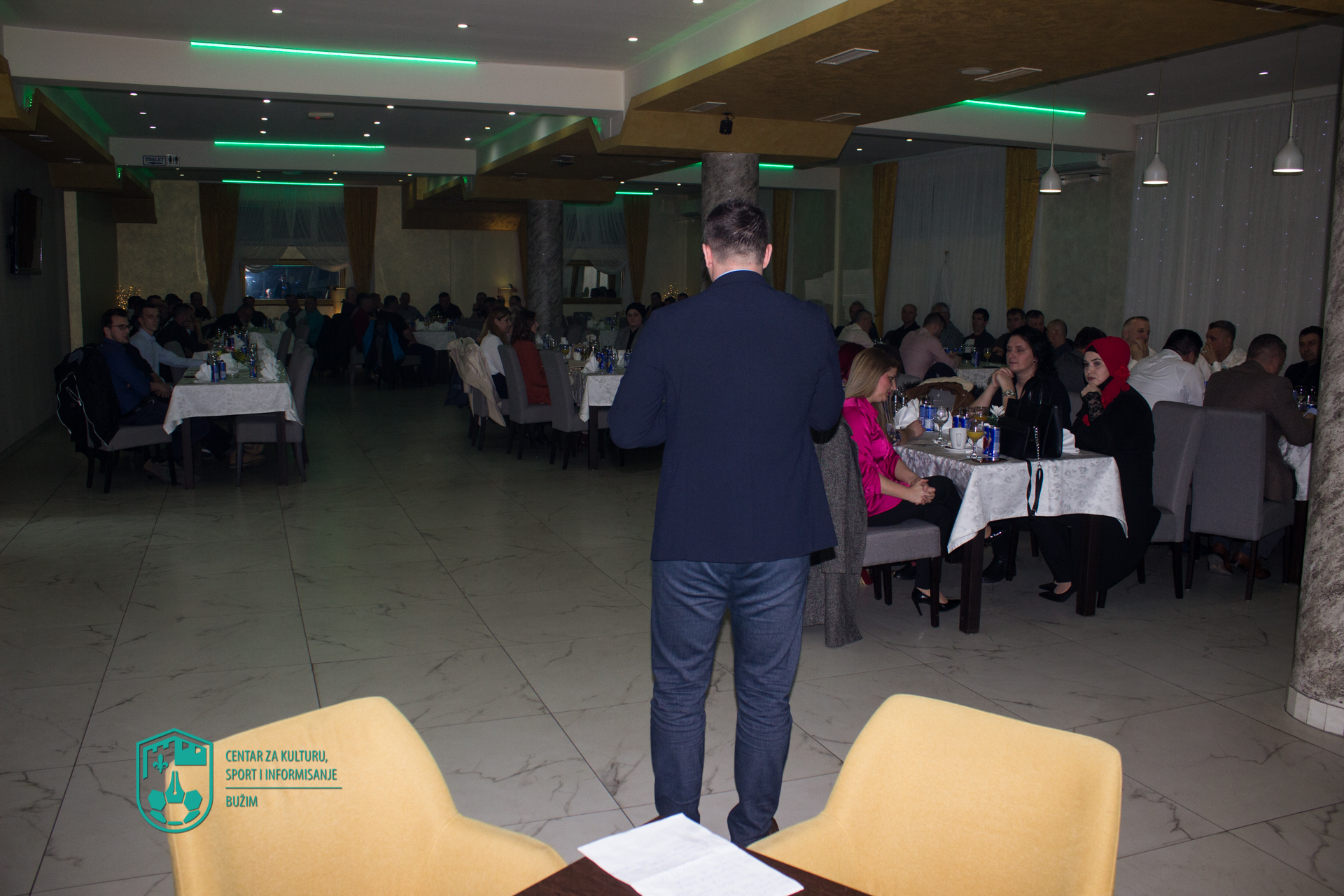Privrednicima se kratko obratio načelnik općine Bužim Mersudin Nanić, zahvalio im se za sve ono što rade da bi život općine Bužim bio što bolji te im čestitao Dan općine Bužim.