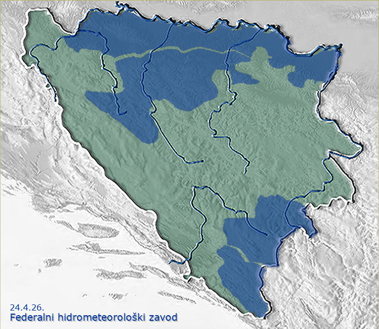 Prema zvaničnim informacijama koje smo dobili ovog jutra za period od 17.04.2026. godine od 7:00 sati do 20.04.2026. godine do 7:00 sati na području općine Bužim.