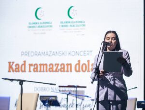 U organizaciji Mreža mladih Muftijstva bihaćkog i Odjela za brak i porodicu Medžlis Islamske zajednice Bužim, jučer su djeca sa područja općine Bužim na najljepši način pokazali ljubav i radost povodom dolaska najdražeg mjeseca – mubarek ramazana. Najprije su ispred džamije džemata Velike Luke podijeljeni baloni i slatkiši, a onda su krenuli zaobilaznicom do Dvorane kod srednje škole. Nakon akšam-namaza uslijedio je koncert sa dobro poznatim ilahija Šejme Mehić i Zejda Svrake. Djeca su uživala, i s velikom sigurnošću učila ilahije prateći Šejmu i njenog muža. Zvaničnici koji su se obratili skupu bili su, koordinator Mreže mladih Muftijstva bihaćkog hfz. Amar Grahovic, zatim načelnik općine Bužim, Mersudin Nanić, te izaslanik Muftije bihaćkog, dr. Haris Veladžić. Ašere je proučio Davud Muminović, a program vodila Erna Bunić. Lijepa večer i lijep doček ramazana, hvala Allahu. Nadamo se da će djeci ostati u sjećanju. Na kraju su svojim prilozima posjetioci dali podršku za liječenje Aldine Vukalić, gdje je skupljeno cca 12.300KM. Da Allah nagradi donatore, sponzore koncerta, organizatore i sve koji su pomogli da sve protekne u najljepšem izdanju, a puna Dvorana pokazuje da nas narod ima dušu i voli riječ koja slavi Allaha i Njegovog Poslanika a.s. Ramazan šerif mubarek olsun! Beitrags-Navigation KNJIGA SVADBENI OBIČAJI BOŠNJAKA CAZINSKE KRAJINE PROMOVISANA U VELIKOJ KLADUŠI Hor Gazija objavio videospot za ilahiju „Putnik“