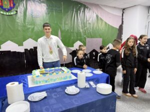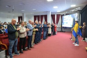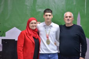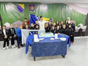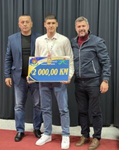 U Velikoj sali JU „Centar za kulturu, sport i informisanje“ Bužim priređen svečani doček za svjetskog prvaka Mehmeda Krupića, člana KBS „Gazija“ Vrhovska, koji je na Svjetskom prvenstvu u Taekwon-dou, održanom u Poreču od 7. do 11. oktobra 2025. godine, osvojio zlatnu medalju i titulu svjetskog prvaka. Organizatori svečanosti bili su Općina Bužim, Sportski savez općine Bužim i JU „Centar za kulturu, sport i informisanje“ Bužim, a događaj je protekao u atmosferi ponosa, emocija i iskrenih čestitki našem šampionu. Prisutnima su se obratili predsjednik Sportskog saveza općine Bužim, Admir Sijamhodžić, načelnik općine Bužim, Mersudin Nanić, te sam zlatni šampion Mehmed Krupić, koji se zahvalio svima na podršci i toplom dočeku. U znak priznanja za ostvareni vrhunski sportski rezultat i promociju Bužima na svjetskoj sceni, načelnik Nanić i predsjednik Sportskog saveza Sijamhodžić uručili su Mehmedu Krupiću novčanu nagradu u iznosu od 2.000 KM. Nakon zvaničnog dijela, druženje je nastavljeno u opuštenoj atmosferi uz piće, šampionsku tortu i fotografisanje s Mehmedom, koji je i ovoga puta pokazao da je, osim što je vrhunski sportista, i istinski ambasador viteškog grada Bužima. Hvala ti, Mehmede, što ime Bužima nosiš s ponosom — tvoj uspjeh je ponos svih nas! Beitrags-Navigation Zlato za Mehmeda Krupića: BiH ima novog juniorskog prvaka svijeta u taekwondou