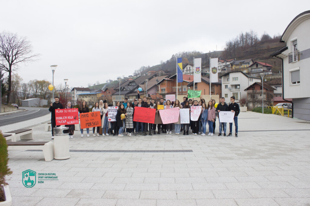 A mi koji smo ostali, mi smo srednjoškolci Bosne i Hercegovine što vama ne želimo! Mi, ujedinjeni, sastavljeni, jednakopravni! A to vas boli. Bolimo vas mi! Mi, mladi, obrazovani i spremni na izazove… Boli vas naša pamet, snaga volje i hrabrost za životom. Mi, koji „kao nismo zreli“ iako odavno ukazujemo na vaše nezrele korake kojima ovu zemlju vodite u sunovrat! Mi smo mladi Bosne i Hercegovine. Mi smo jači i od najjače vaše političke partije. Mi ne možemo sjediti u kući i nadati se boljem životu. Mi se želimo pokrenuti! Ma mi smo se pokrenuli! Vidite da jesmo?!», bila je poruka bužimskih srednjoškolaca na trgu Alija Izetbegović u Bužimu