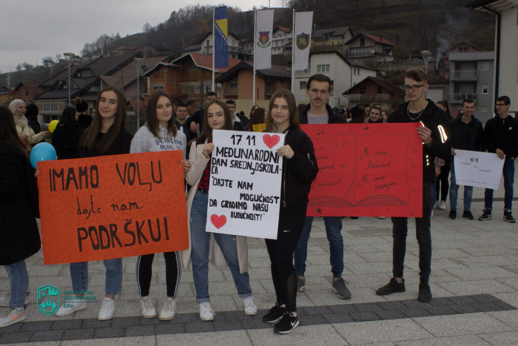 Učenici MSŠ «Hasan Musić» Bužim organizovali su mali performans na Trgu Alija Izetbegović u Bužimu u cilju obilježavanja Dana srednjoškolaca kojim su željeli poslati poruku i svoje viđenje kako aktualne situacije u našoj državi tako i sjećanja na dan 17.11.1939. godine.